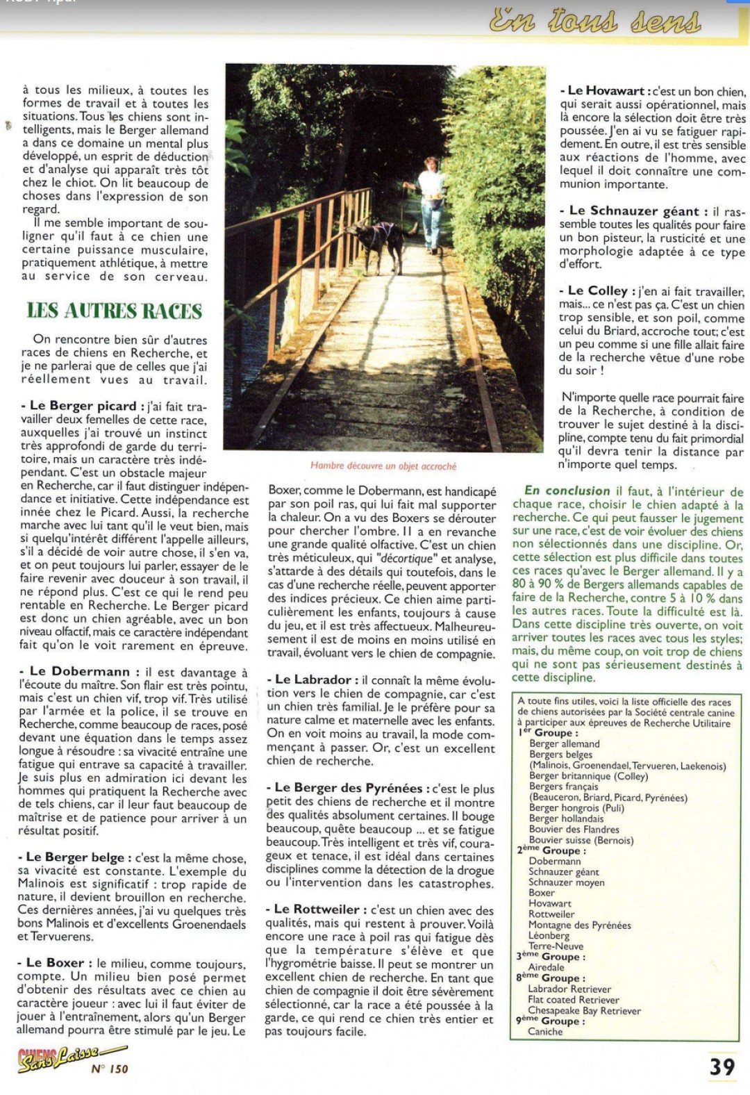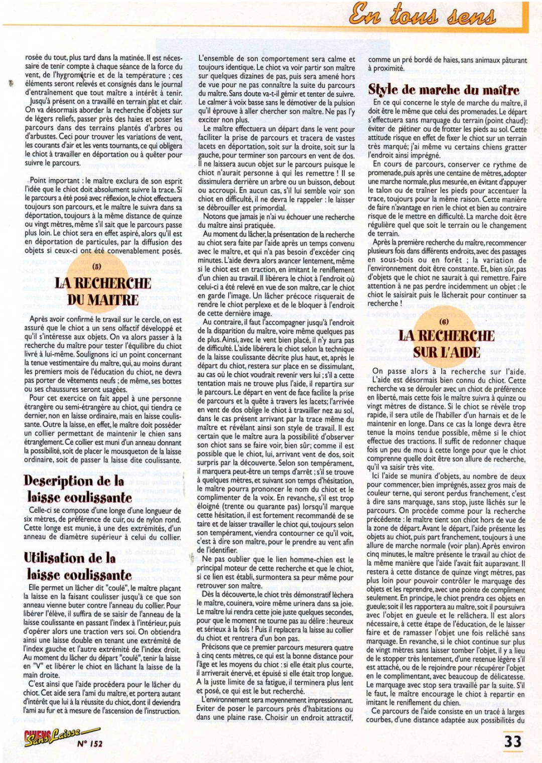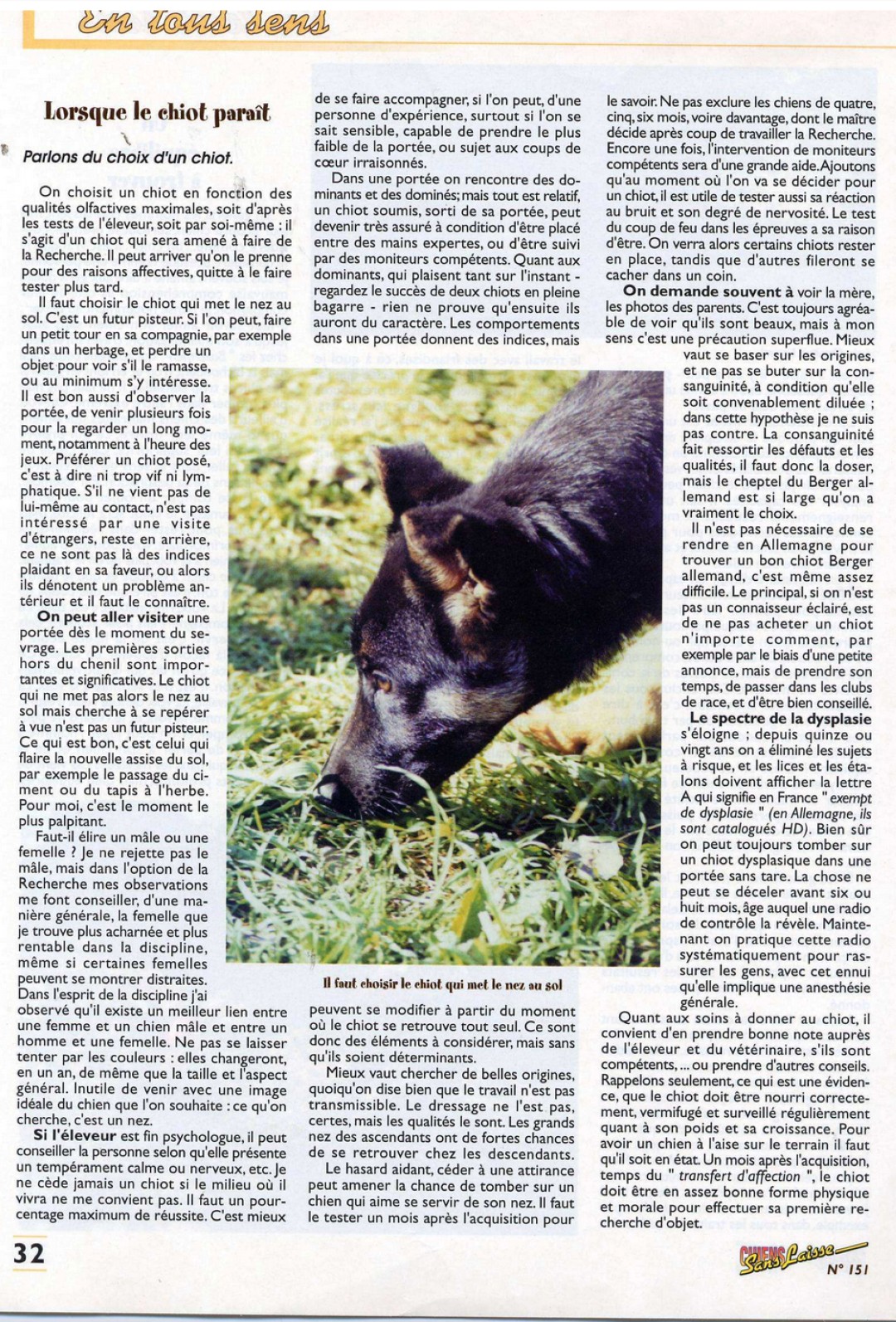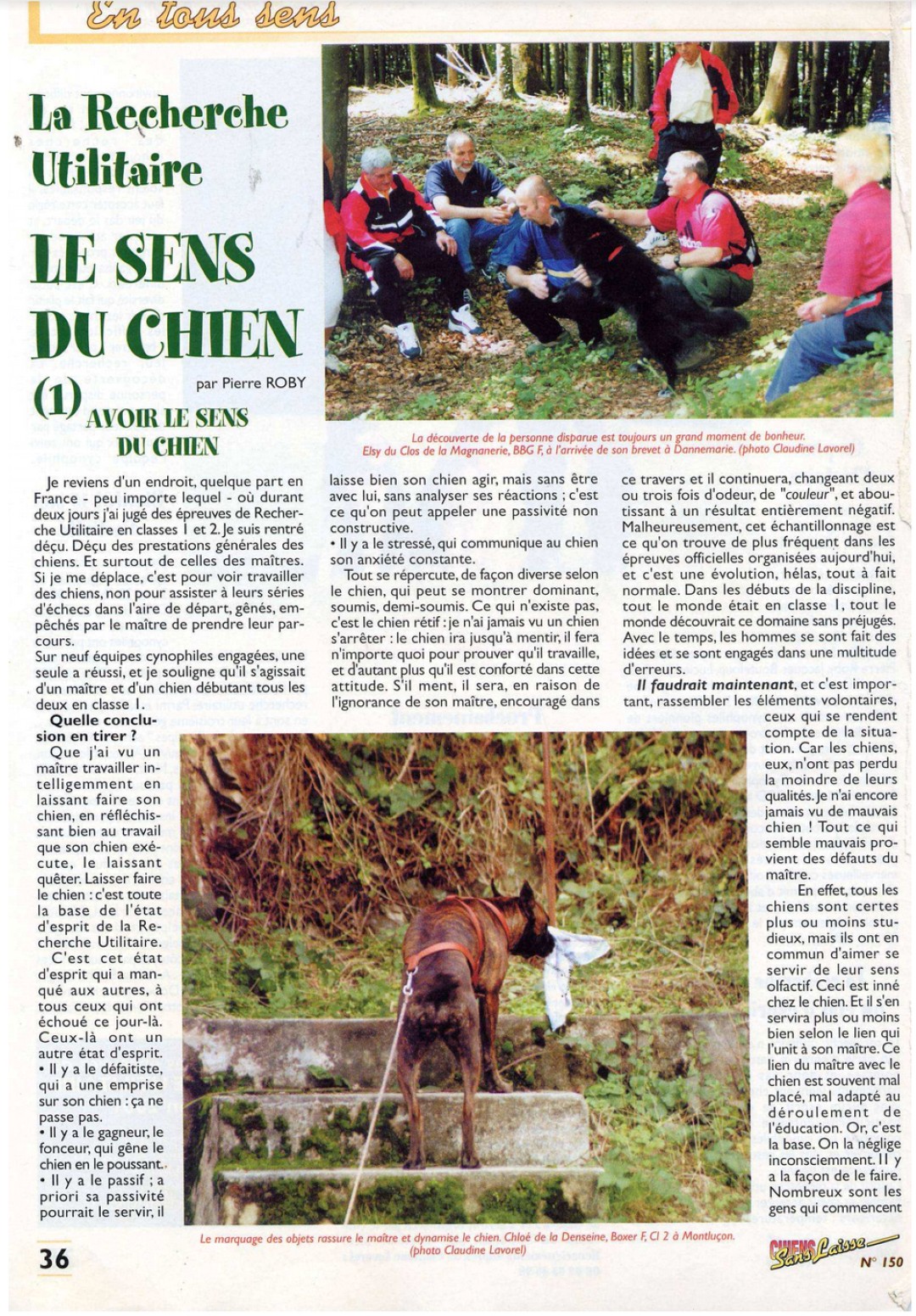 LE SENS du CHIEN par Pierre Roby - N° 150 à 158 : de mars à décembre 2001